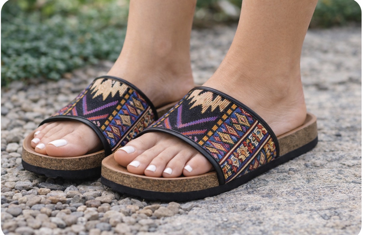 These stylish African print slide sandals combine comfort, culture, and everyday wear. Designed with a soft cork footbed and vibrant ethnic patterns, they are perfect for casual outings, summer days, or relaxing at home.